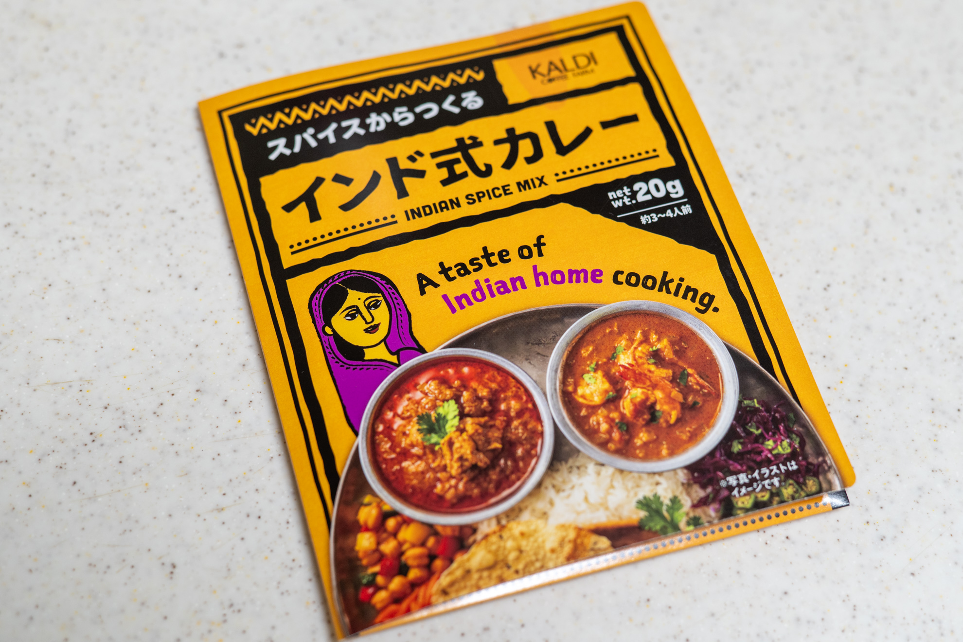 カレーと言えばまあだいたい皆さん好きですけれども、私実はそば屋で出るような和風カレーはいまいち好きじゃなくて、生意気ですがタイカレーやインドカレーといったとろみの少ないスパイスの効いたカレーが好きなのです。日頃から簡単に作れてかつ本格的なカレーキットを見つけては試しているのですが、今回挑戦するのはKALDIの「スパイスからつくるインド式カレー」です。