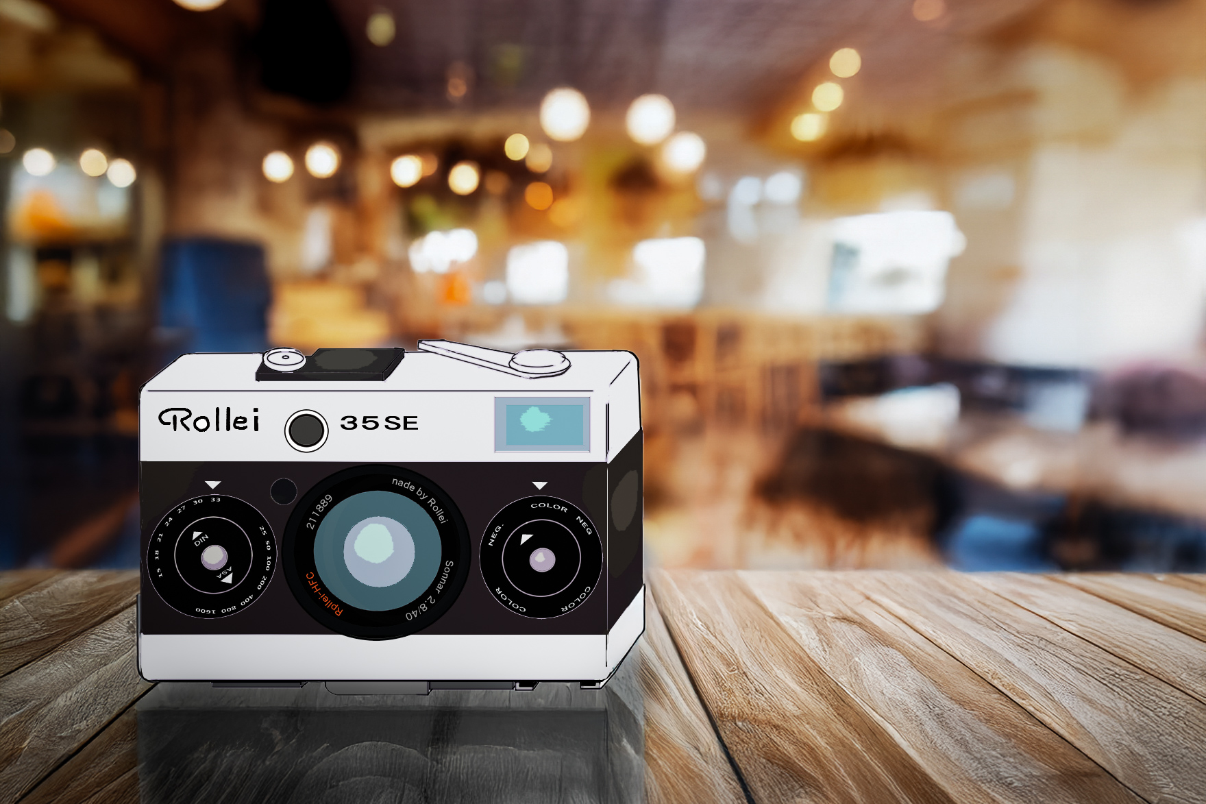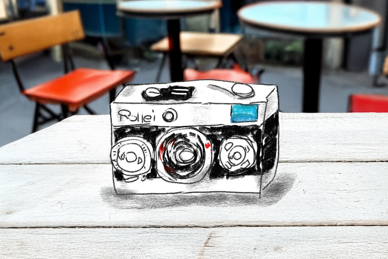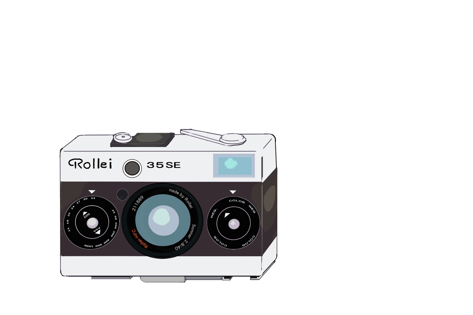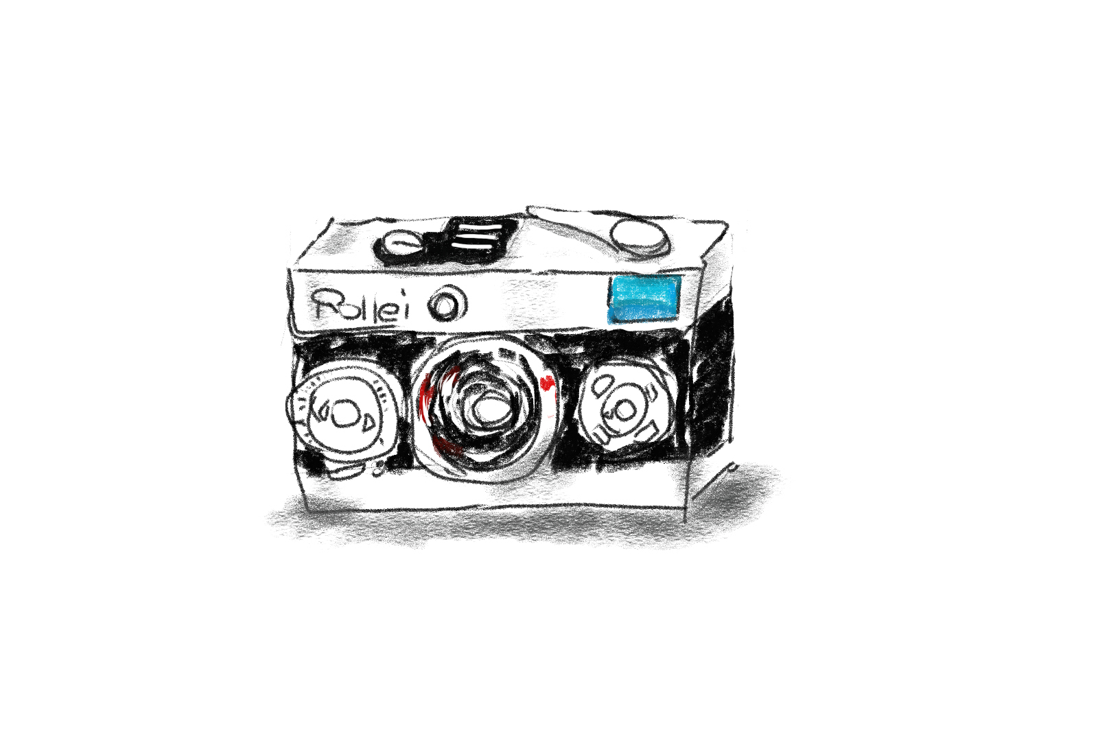 すべてフリーハンドで愛用のローライ35SEを描いてみます。うーん、これはひどい出来だ笑。子供の落書きか。