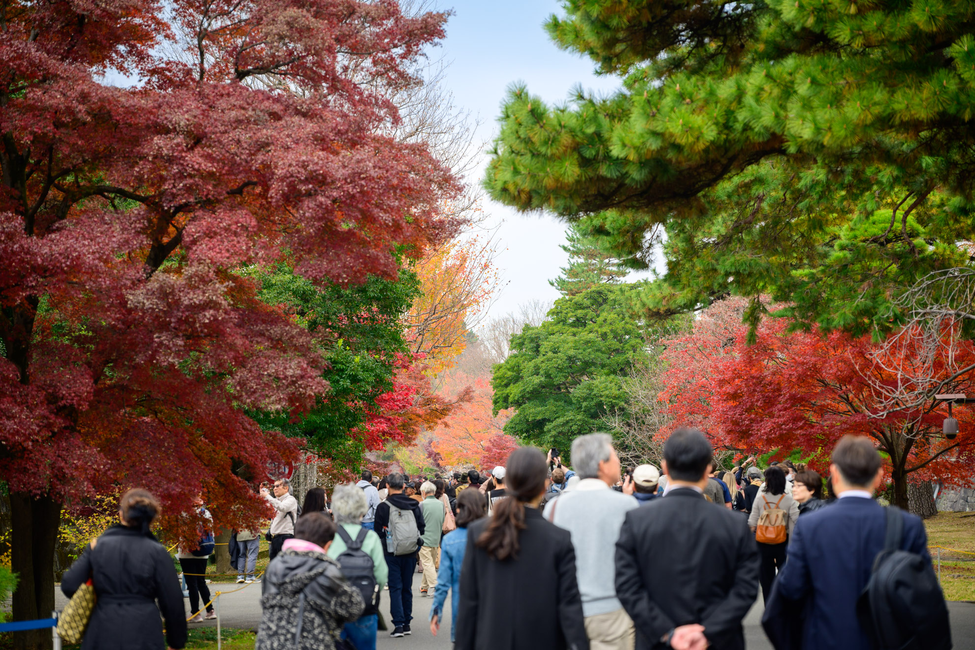 皇居乾通り一般公開は、平成26年に上皇陛下の傘寿を記念して初めて実施したものですが、このとき好評であったことから、以降毎年紅葉と桜の見頃の時期に期間限定で恒常的に実施しています。