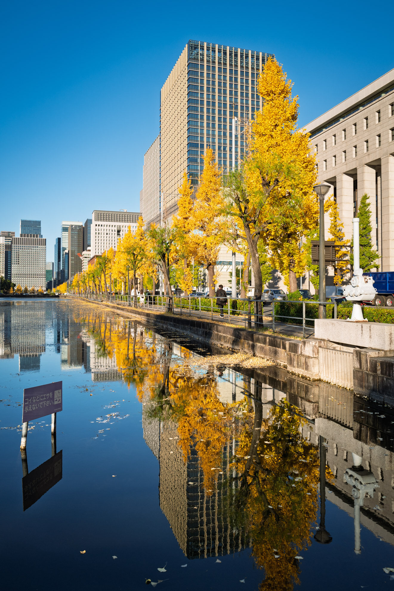 定番撮影スポットの日比谷濠で秋のリフレクションを