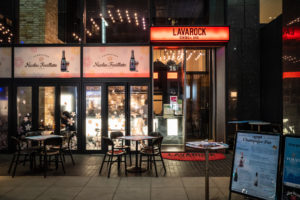 横断歩道の途中から銀杏並木をパチリ。28mmはシーンによっては広角感を強調することもできます。
