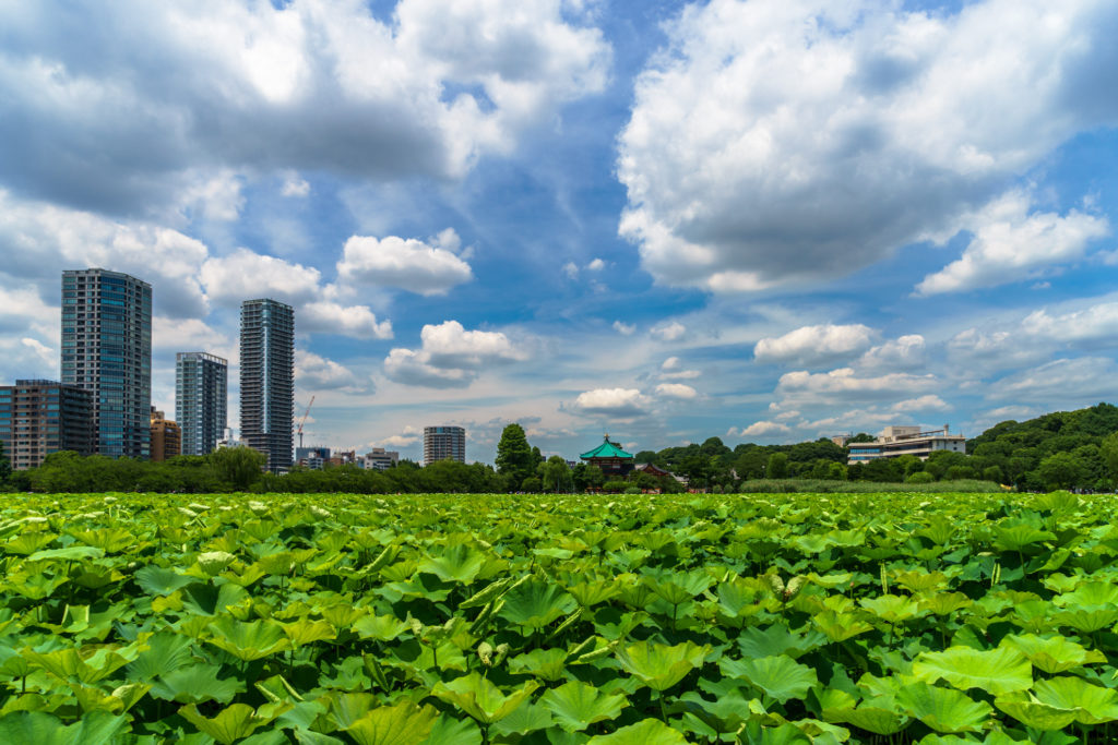 SONY α7 SEL2470Z F11 1/160秒 ISO100 上野は頻繁に訪れるのですが、いまは蓮が生い茂っていますね。そろそろ花も咲くので、花のほうも撮っておきたいです。 -