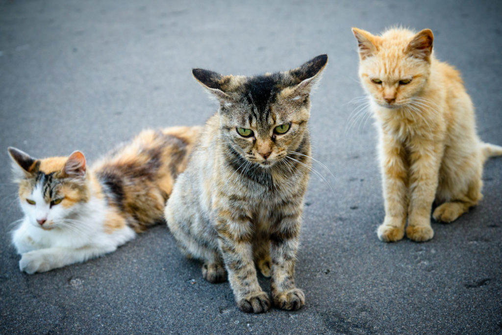 Nikon D800 AF-S NIKKOR 24-85mm f/3.5-4.5G ED VR 1/80秒 F5.6 ISO800 ごろつきみたいなねこさんの集団を発見。悪そうな目つきなのにねこというだけでやっぱりかわいいです。 -