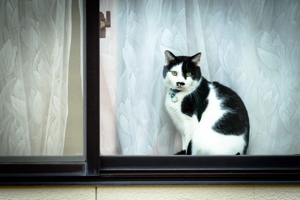 Nikon D800 AF-S NIKKOR 70-200mm f/4G ED VR 1/200秒 F5.6 ISO220 ふと視線を感じて顔をあげるとそこには、ねこさんが。じーっとこちらを見ています。窓際がお気に入りのようで、いっつもこうしています。 リンク -