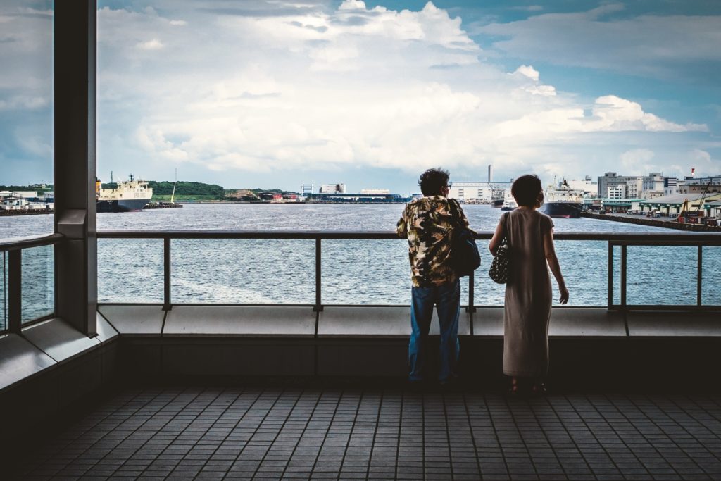 RICOH GRⅢ 1/1600 F2.8 ISO100 東京はお台場に位置する青海駅からコンテナ埠頭側を眺める熟年カップルの姿を捕えました。いや、いくつになっても仲がいいというのは良いことです。ところで青海駅って青梅市にあるJR東日本青梅線の青梅駅と名称が似てて一... -