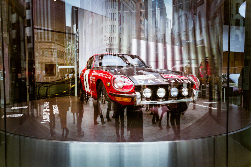 RICOH GR1S (dupe by Nikon Z6) 導入したGR1S(過去記事こちら)で撮影したショットをお届けしましょう。こちらは銀座の日産ショールーム「NISSAN CROSSING」に展示されていたモンテカルロラリー仕様のダットサン240Z(日本名フェアレディZ)。ガラスに写... -