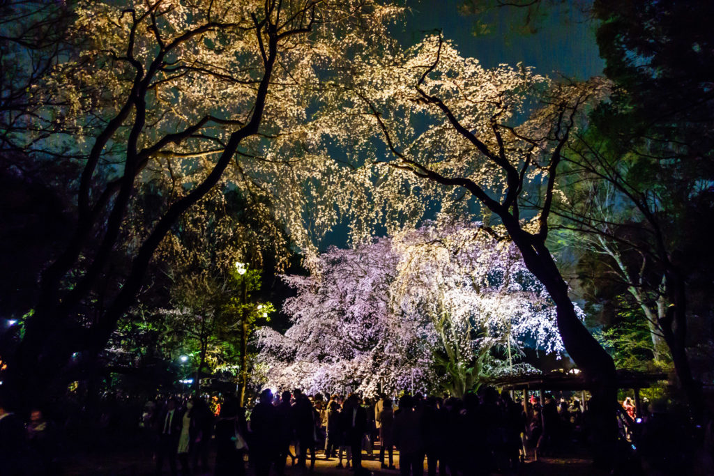 SONY DSC-RX100 1/30秒 F1.8 ISO3200 東京駒込の六義園では、シダレザクラが満開を迎えています。会社帰りにRX100を持って立ち寄ってみたら、結構な人出じゃないですか。メインのシダレザクラは人の輪に何重も囲まれて、普通のアングルの写真は撮れそ... -