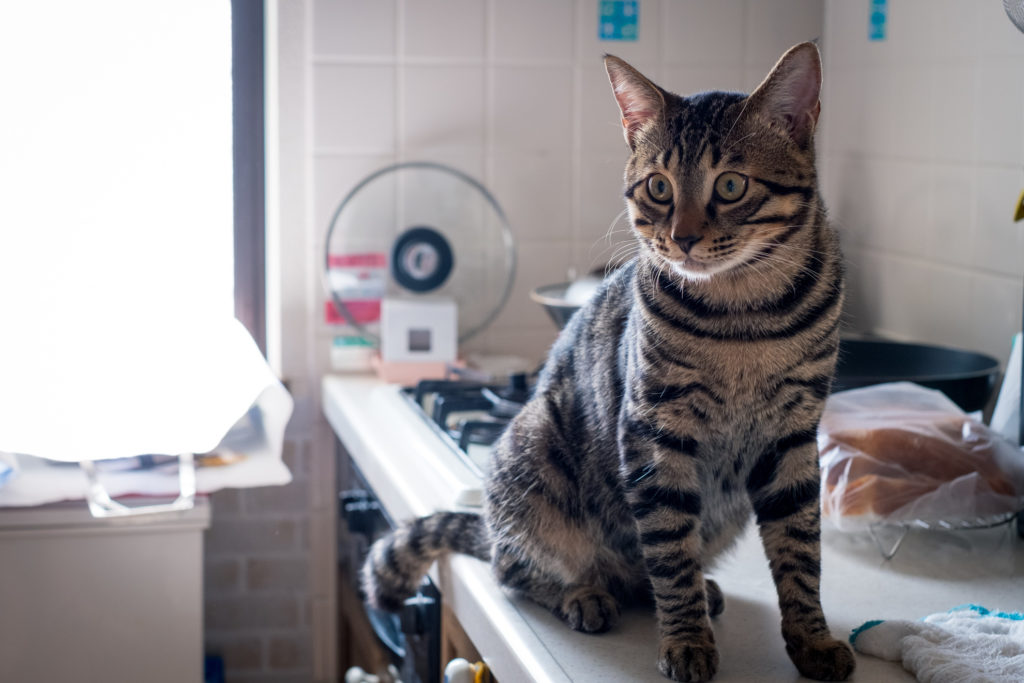 FUJIFILM X-T20 FUJINON XF35mmF1.4R F4 1/150秒 ISO640 トラは意外といつも同じような場所にいることが多いです。キッチンにはあんまり来ないのでこのショットは珍しいかも。
