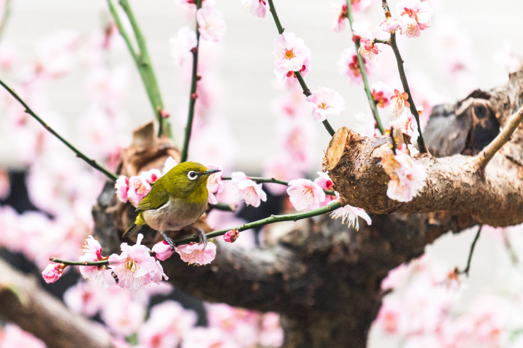 (フォト)庭の梅の木にメジロがやって来た